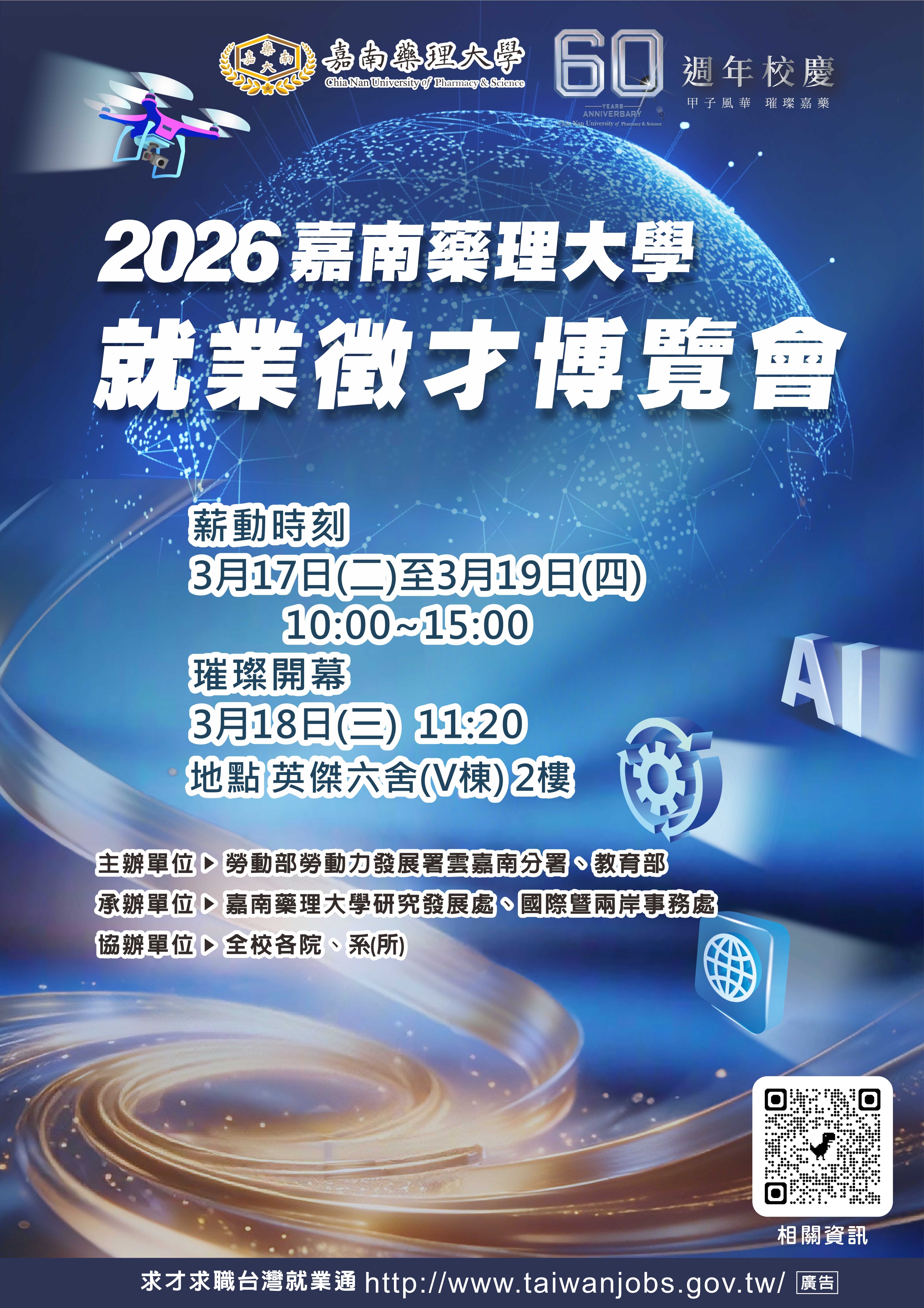 【活動訊息】嘉藥學校財團法人嘉南藥理大學 - 「甲子風華 璀璨嘉藥」60週年校慶系列活動之就業徵才博覽會