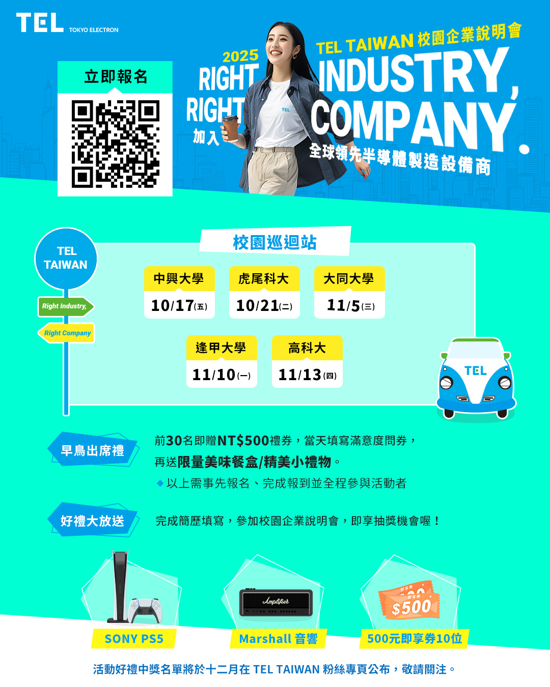 【活動訊息】東京威力科創 - 114/11/05(三)校園企業說明會,邀請感興趣的同學參加!