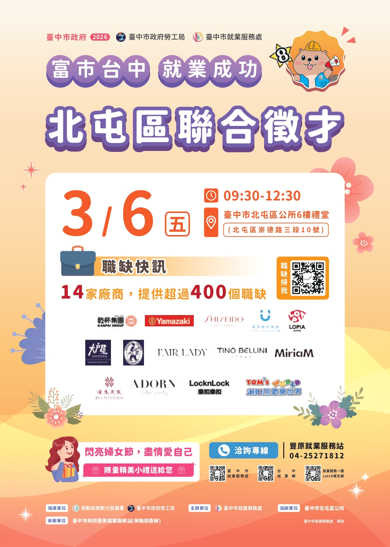 【活動訊息】臺中市政府勞工局 - 115年3月6日(星期五)假北屯區公所6樓禮堂辦理「富市台中 就業成功」北屯區聯合徵才