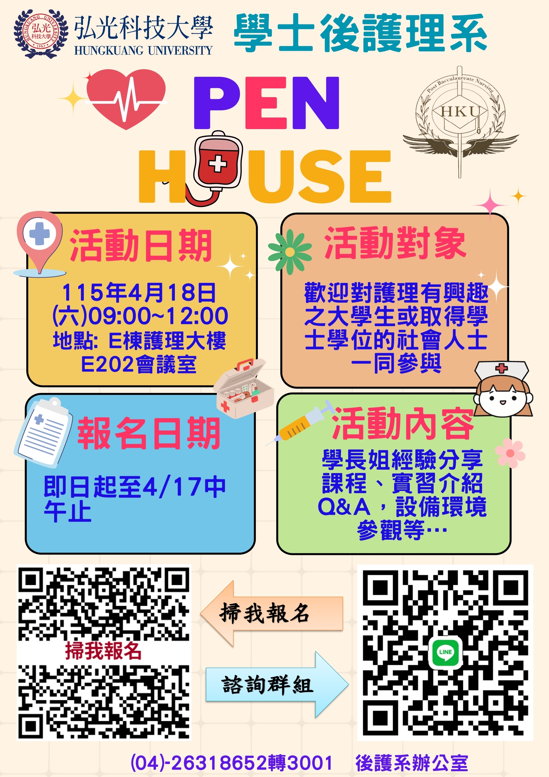 【活動訊息】弘光科技大學 - 115年04月18日(六)辦理學士後護理系OPEN HOUSE活動